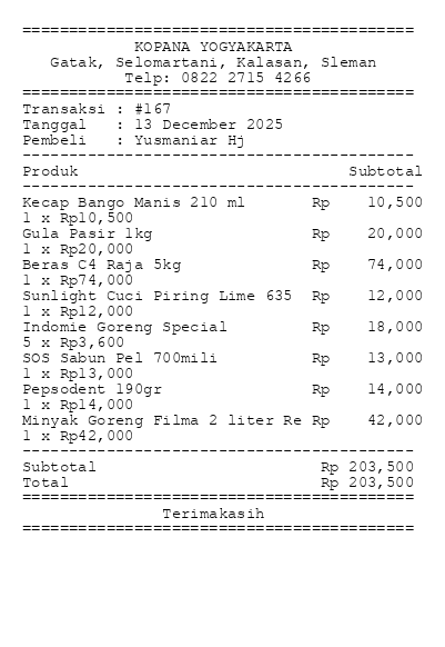 Preview Nota - Transaksi #167